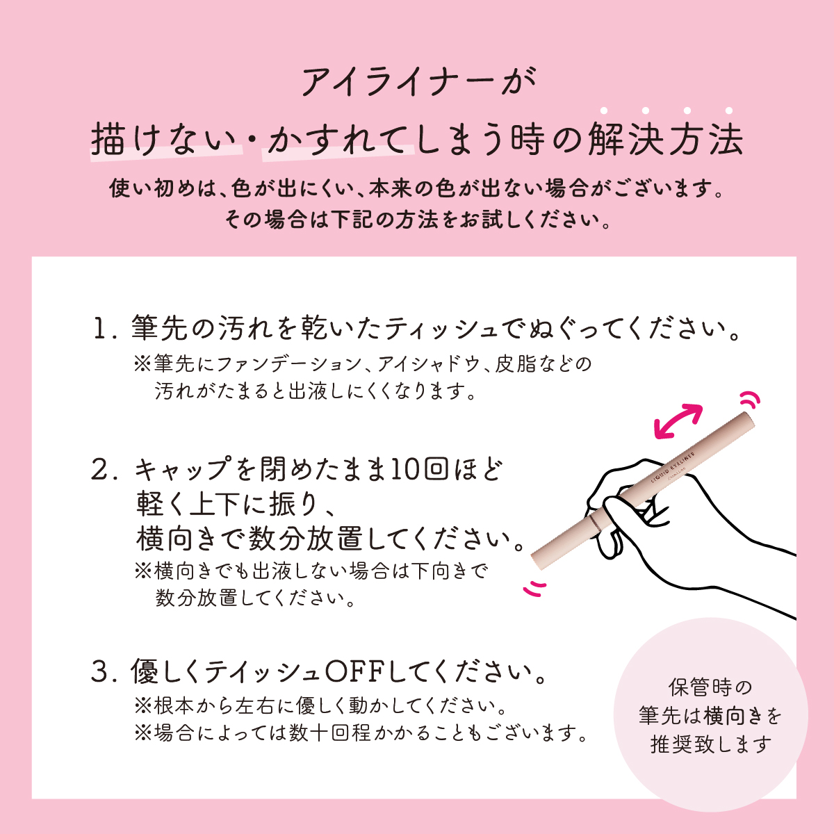 やわらかで印象的な目元に仕上げ、濃密ラインをキープします。色素沈着しにくい顔料使用。